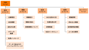ページ数の決定、カテゴリー分け、ページ同士のつながりなどを決定します。