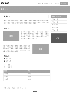 次に、各ページに何をどのように配置するかを、ワイヤーフレームと呼ばれる図に起こします。