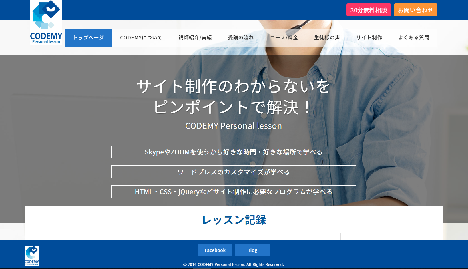 トップページの「レッスン記録」はレッスンを実施するたびに更新するので、毎回テンプレートを編集しなくて済むように、管理画面からの簡単な入力で自動更新されるようにプログラミングしました。